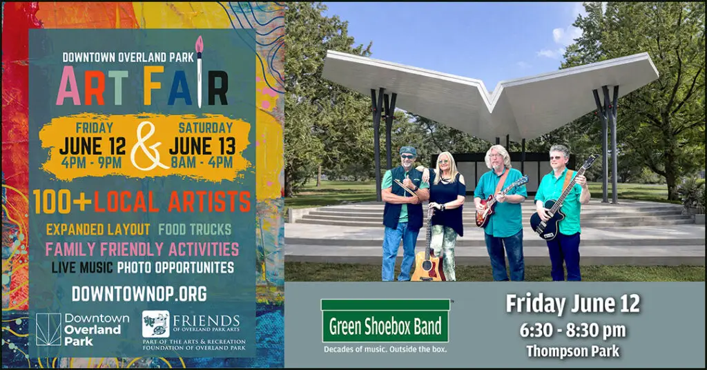 Green Shoebox Band will be performing for the annual Downtown Overland Park Art Fair on June 12th from 6:30 to 8:30pm. Enjoy a summer weekend in Downtown OP with a extended layout, extended hours, more food trucks, live music, children’s activities and 100+ juried artists! Vendors and entertainment will extend from Thompson Park down Santa […]
